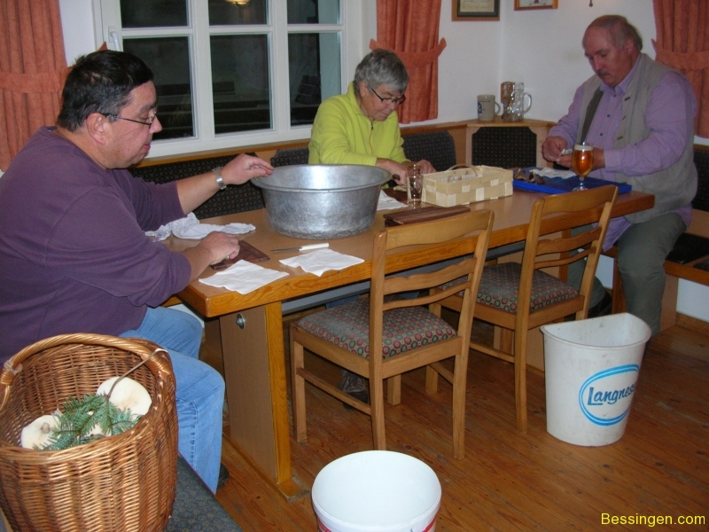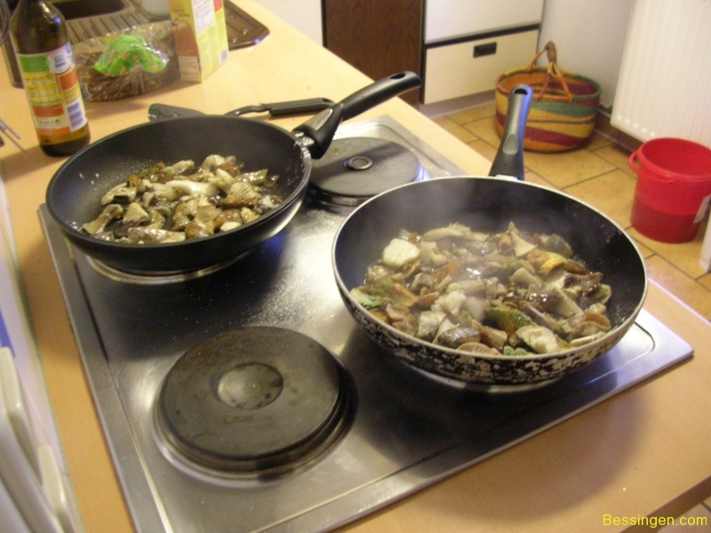 Im Bürgerhaus wurden die Pilze gesäubert und von Iris zu einem köstlichen Mahl zubereitet.