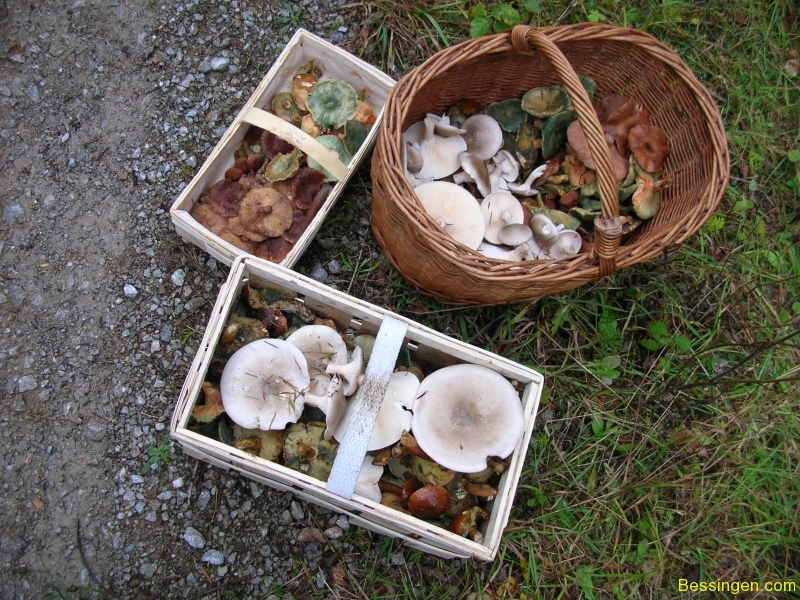 Fliegenpilz, Nebelgrauer Trichterling, Rotfußröhrling, Dachpilz, Erdstern, Ziegenlippe, Speitäubling, Hallimasch, Bovist, Edelreizker, Marone und Knoblauchschwindling.