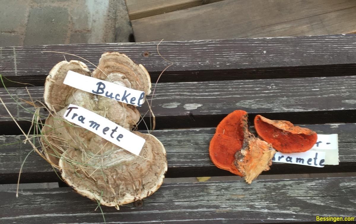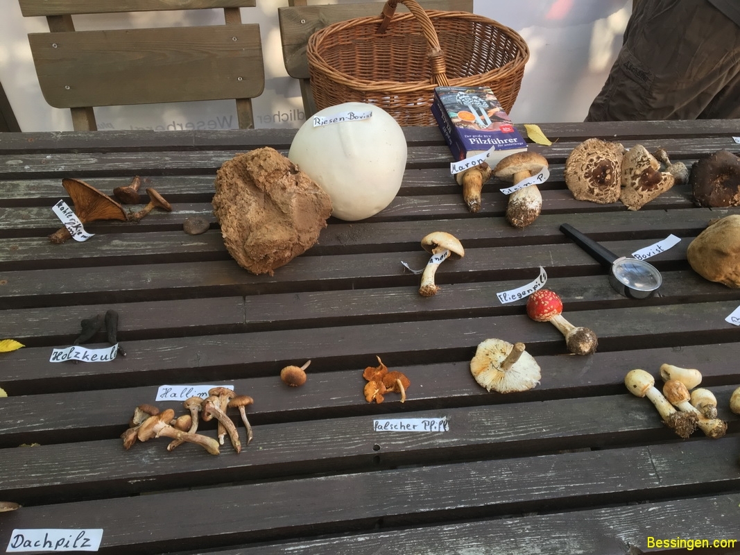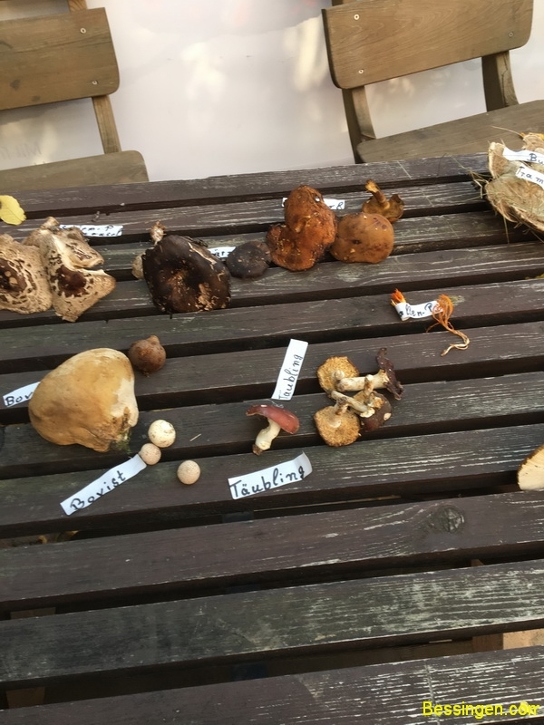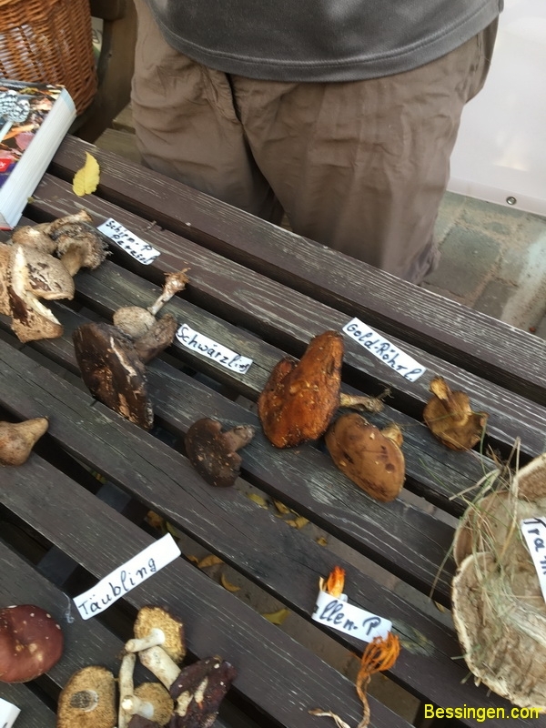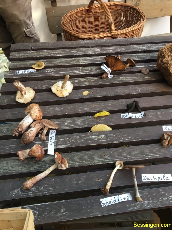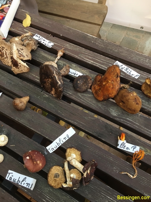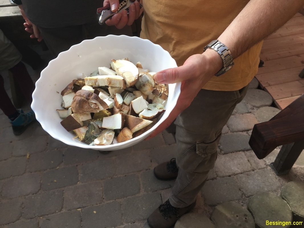 Steinpilze, Scheiden-Streiflinge, Bovisten, Täublinge, Ziegenlippe, falsche Pfifferlinge, giftige Fliegenpilz, der giftige Kahle Krempling, noch ein giftiger Panterpilz, Blut-Reizker, Schirmlinge, Perlpilz und ein Trameten- Baumpilz. Aber hauptsächlich Maronen.