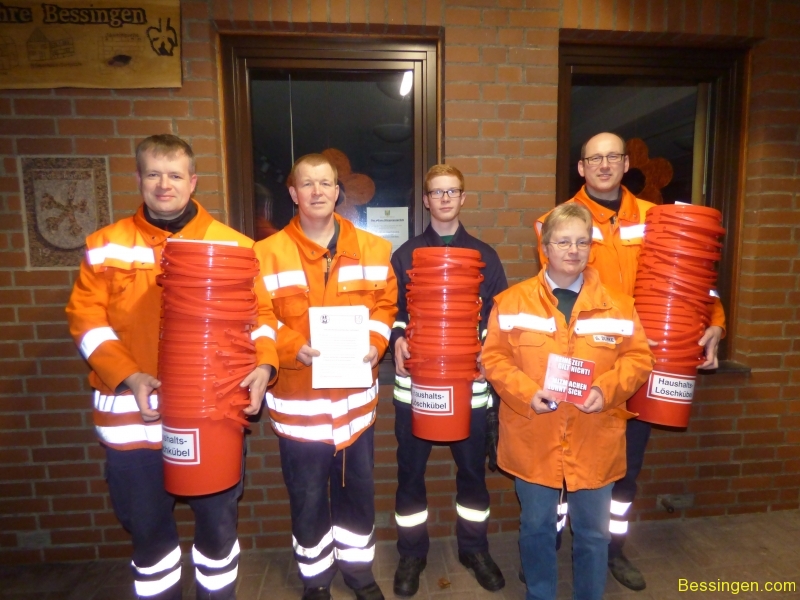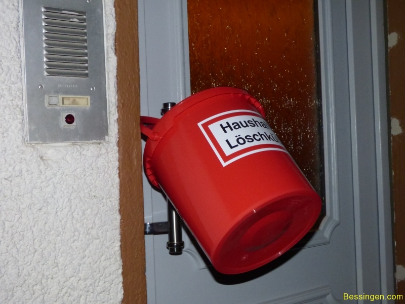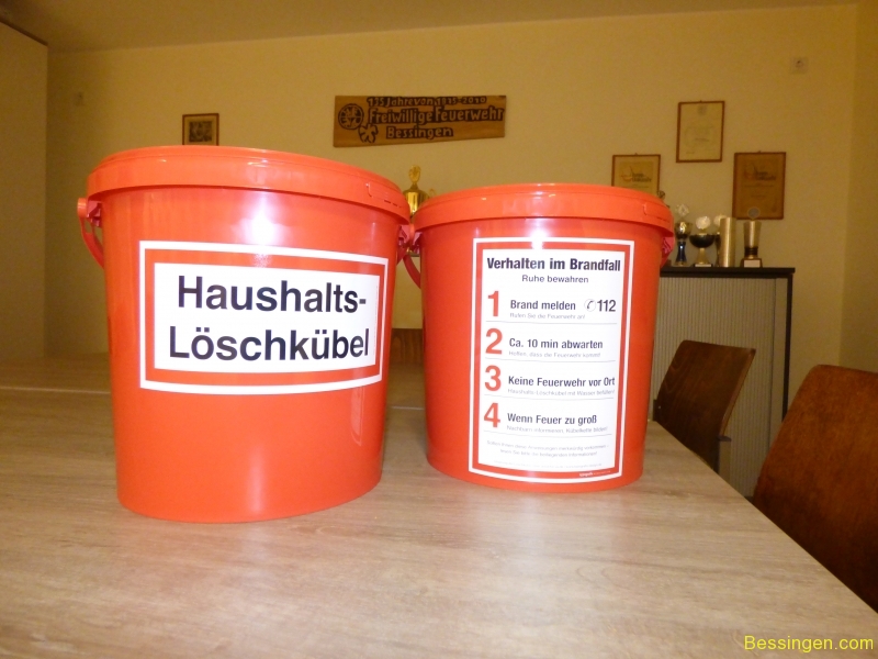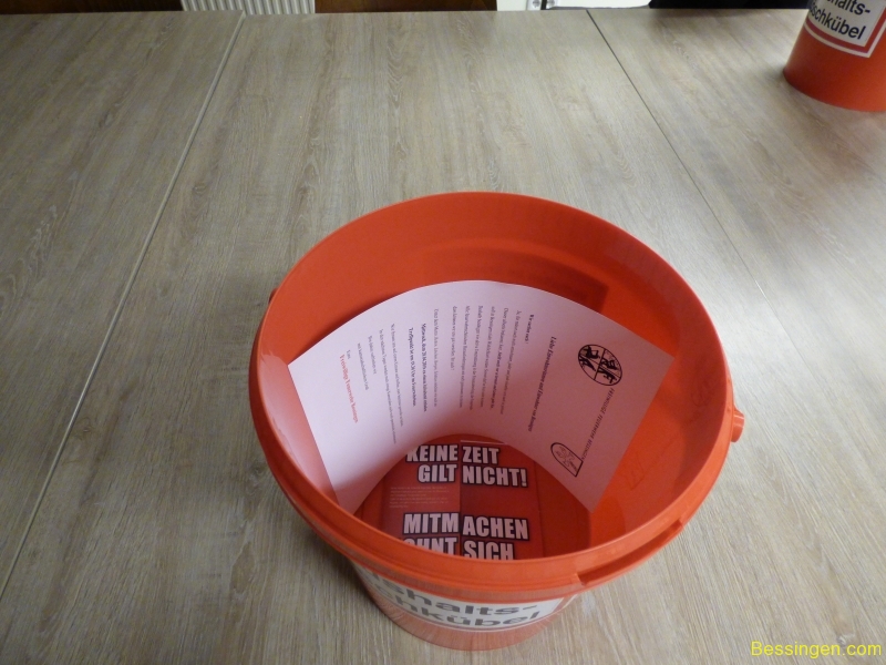 In jedem roten Eimer sind Hinweise und Infos zur Feuerwehr mit einer Einladung zu einem Informationsabend am 20. April 2016 um 19:30 Uhr im Feuerwehrhaus Bessingen (DGH). Offizielle Einladung – hier klicken!